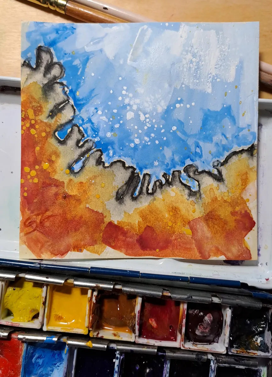 • Where big worlds live in tiny spaces. Here is a collection of my miniature masterpieces, just 9x9cm, capturing impressions of places, ideas, experiences, and artistic explorations. Each painting is a window into a specific place, a fleeting idea, a deep dive into art exploration, or a journey into your inner world. Think of it as a portable gallery of "impressions," designed to fit in the palm of your hand. Once created, these treasures fit into the box, creating a personal haven of fond memories and visual poetry. Only happy moments, filling and cherishing.